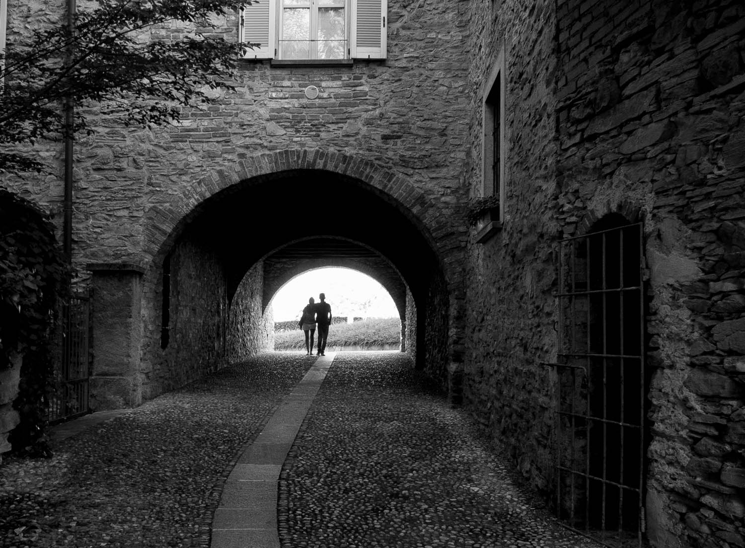 Forse, mi sarei avvicinato sin all'ingresso dell'arco escludendo tutto il preambolo che da una parte diluisce molto il soggetto nell'ambiente e dall'altra ti ha messo in difficoltà con la luce essendo molta la differenza fra chiostrino ed esterno.