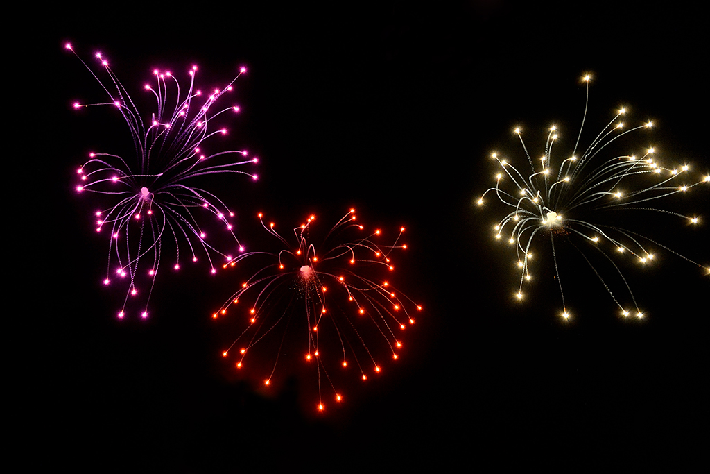 Questo tipo di fuochi artificiali non li avevo mai visti. Molto belli.