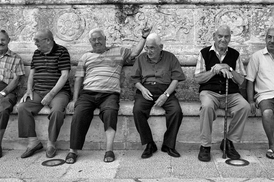 Spiego... mi infastidiva vedere la solita scena ben composta, lo potevo fare allargando il taglio e includendo i due giovanotti ai bordi per intero ma, onestamente, mi sono lasciato ispirare da alcune fotografie di Winogrand e, indegnamente, ho preso spunto.