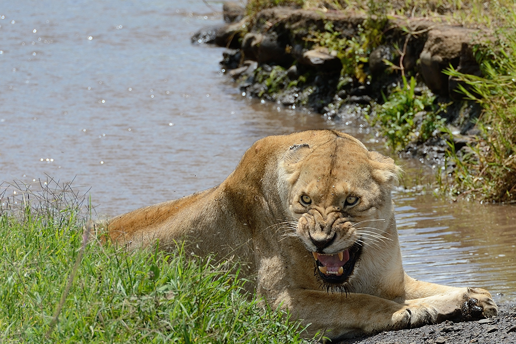 Ho croppato un po' per escludere le zampe di un'altra leonessa. Ma eravamo decisamente vicini. Nella foto che allego è la stessa leonessa che si è spostata dal davanti della jeep al fianco della stessa. Ho volutamente inquadrato il finestrino per dare idea della (poca) distanza. Wink