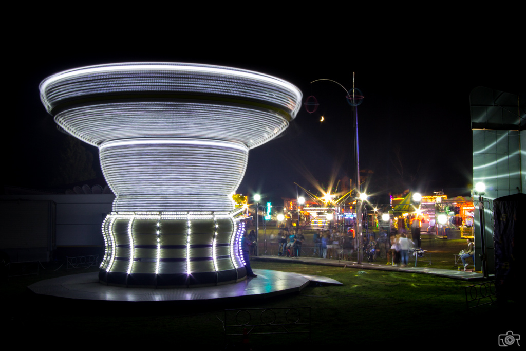 Interessante notturno con la luna quasi premio da prendere al volo.Concordo con Mario sul lungo tempo che,cancellando il roteare dei seggiolini e dando continuità lineare alle luci,ha ingessato lo scatto rendendolo stranamente poco dinamico.