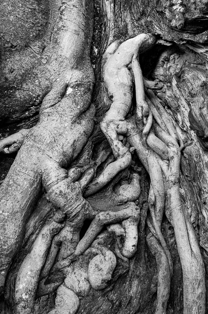 Un invito a cercare dentro il groviglio vegetale dove si distingue su tutto quell'essere come colto da una scomposta voluttà. Un ben articolato b/n che movimenta le forme e cattura l'osservatore.