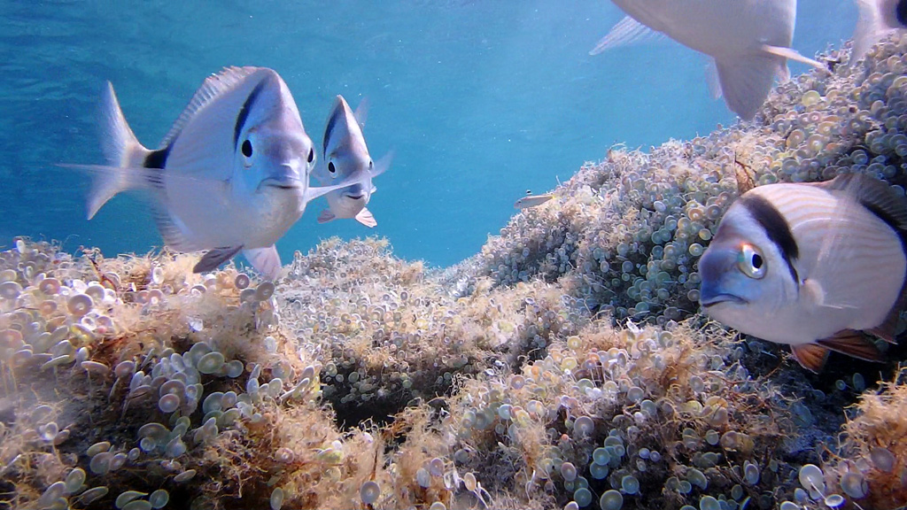 Bellissimi colori e notevole nitidezza per essere uno scatto sub.Da questa ottima immagine si potrebbe ricavarne anche un'altra con taglio quadrato tenendo solo i due amici di sinistra. Smile