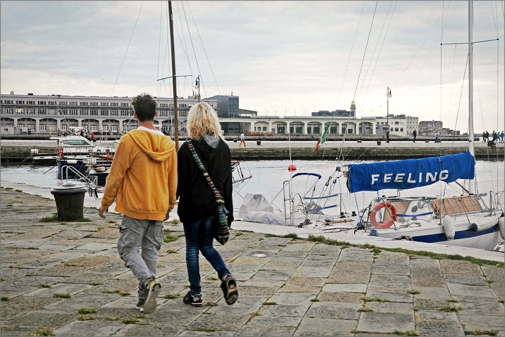 Hai ragione Giovanni:atteso! Diversamente dal molo Audace che si vede di sfondo questo è poco frequentato,dopo parecchio una prima coppia,ho puntato la macchina per cercare l'inquadratura e loro,arrivati a tiro,si sono bloccati scusandosi e mi hanno aggirato temendo di intralciare un mio scatto!Quando finalmente ho visto arrivare questi ho nascosto la macchina dietro la schiena zufolando e poi clik! Grazie per il tuo graditissimo ed attento commento. |