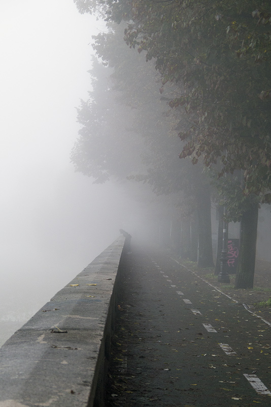 Ottima composizione con le linee di fuga che,attraverso la leggera cortina di nebbia,ci conducono alla piccola figura umana.Grande profondità e bellissima atmosfera autunnale sottolineata dal tenue colore.Complimenti!Ciao,Sergio.  |