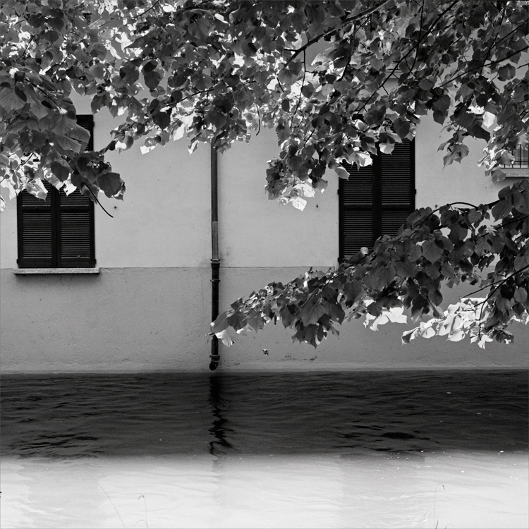 Vado un po' contro corrente, a me la parte chiara in basso piace, la vedo come un richiamo del gioco di luce e ombre presente tra i rami. Giochi nervosi tra le foglie che trovando l'acqua si distendono. Molto bella.