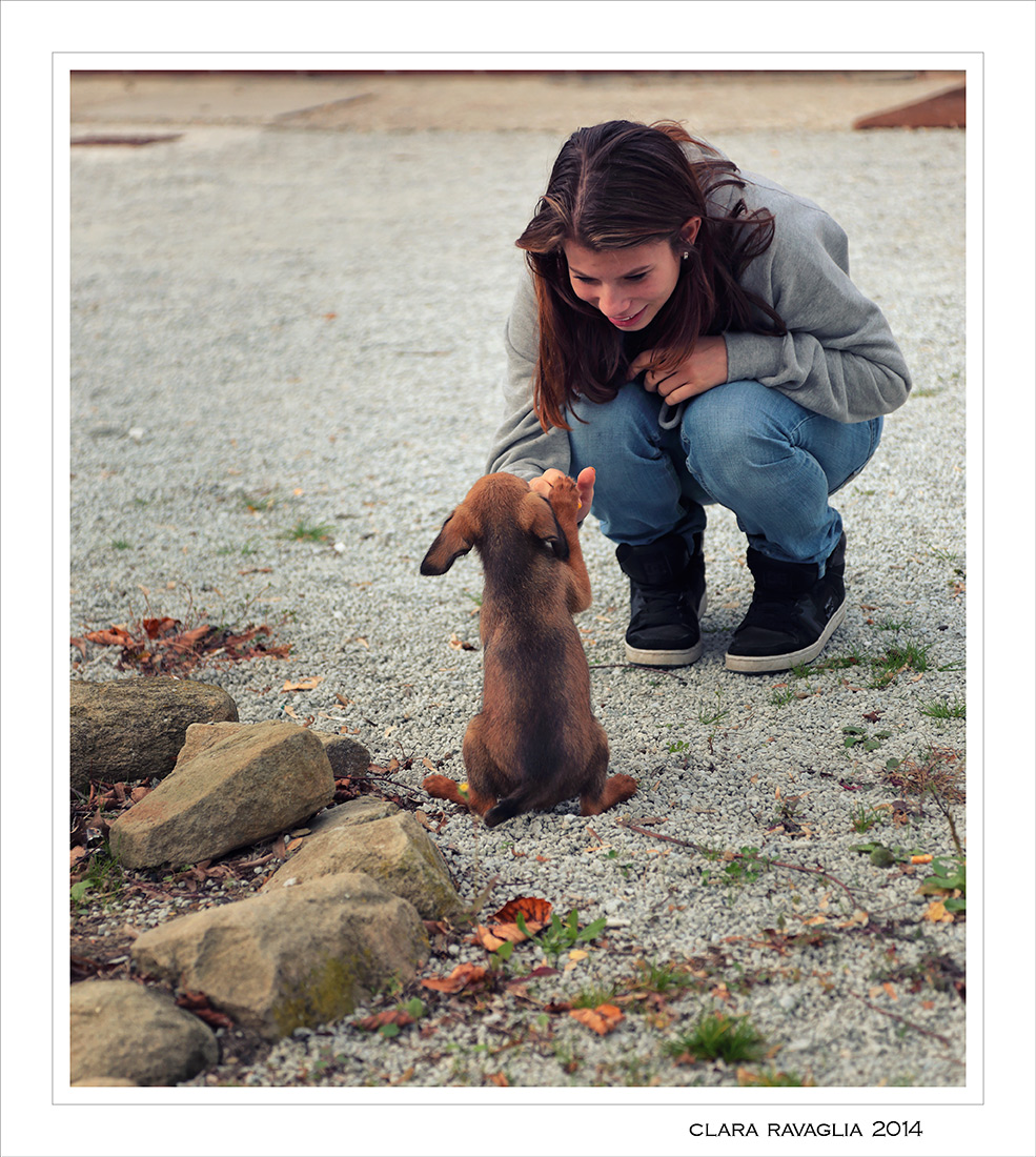 Ciao Clara come ben sai la foto deve anche saper trasmettere emozioni, sensazioni e tu in questa ripresa ci hai regalato tutto l'amore che trapare tra la ragazza ed il tenero cucciolotto.