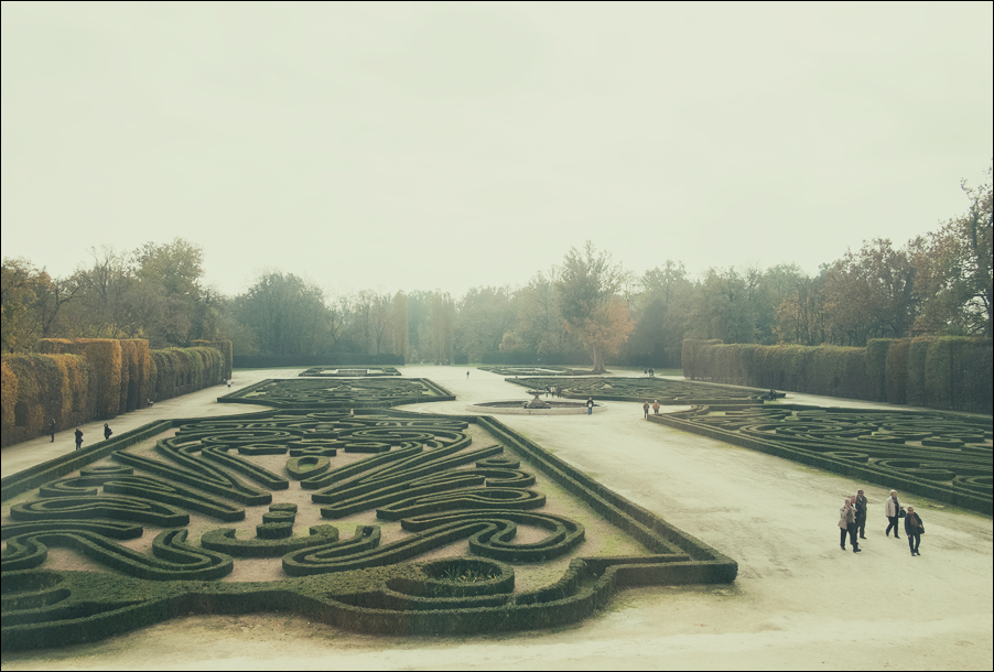 La tua foto ci riporta infatti direttamente, naturlamente, alla immagine di Ghirri, fortemente nei toni, e in tutto l'inseeme ripreso. La focale usata, ti fa escludere l'angolo inferiore sinistro dell'aiuola di sinistra, e purtroppo non riesco a far a meno di notarlo, ma in questo lavoro è comunque un paramentro che perde buona parte della sua importanza a favore della delicatezza d'insieme, di arioso classicismo, del senso di visione che va oltre il tempo contingente che io avverto.