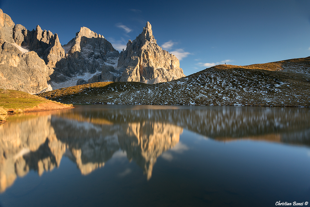 L'equilibrio e l'armonia in fase compositiva, la specularità dell'immagine, i colori brillanti e, non per ultimo, la piccolissima figura umana che aiuta a far percepire la maestosità della natura, sono tutti elementi che contribuiscono a restituire una foto che si lascia guardare davvero con piacere. Bravo  _________________ Riccardo Bruno |