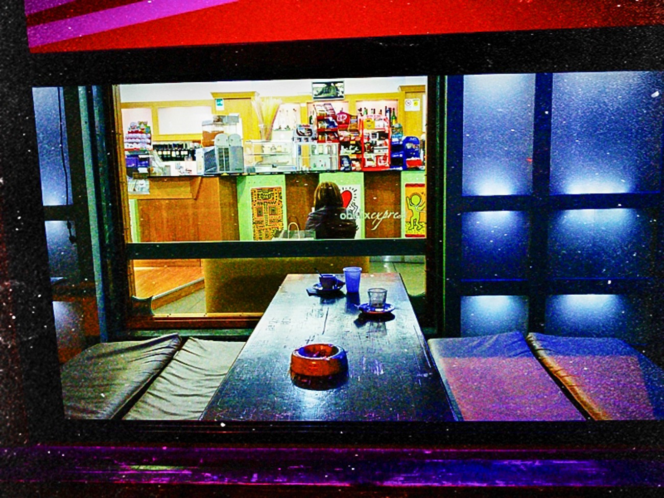 ma sono rimasto colpito dal tavolo vuoto in primo piano con la ragazza di spalle nello sfondo, le due tazzine a testimonianza delle persone sedute li, come l'epilogo finale di una storia finita male..per nulla banale, emotivamente efficace, l'ambientazione mi riporta alle atmosfere tristi e solitarie di Hopper.