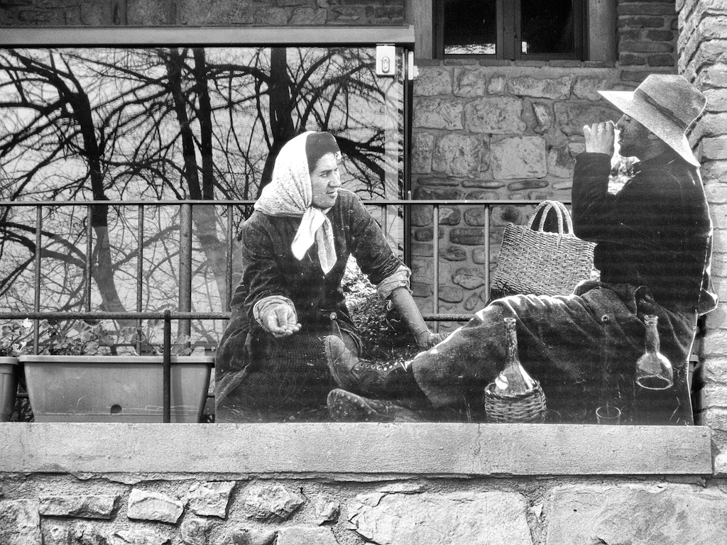 Tornando allo scatto anche a colori avrebbe detto poco, forse avresti dovuto inserirla nell'ambiente, più aria intorno a far capire perché c'è un cartonato sagomato con figure antiche o anche inserire nella scena qualcosa di moderno (un bambino?) a contrastare l'antico. In entrambi i casi avresti attuato un'azione creativa realizzando una tua foto. In questo senso "dice poco"