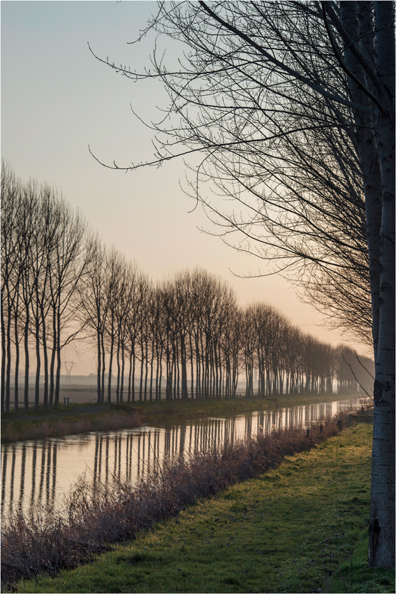 la dolcezza della atmosfera è padrona assoluta mitiga anche la nota di rigore che la serialità della linea d'alberi introduce. Però qui, e se lo dico io è tutto dire...eheh , avrei fatto sparire con licenza fotografica, il minuscolo traliccio in lontananza.