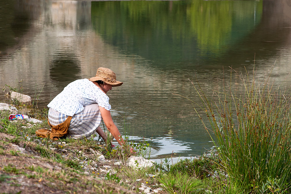 Questa foto mi piace molto. Mi piace la diagonale che raccoglie la terra e l'immagine della donna che lavora, mi piace "l'orizzonte " sfocato con il ponte riflesso nell'acqua che aiuta l'immaginazione a entrare nella scena. Belli i colori. beh che dire..mi piace proprio!