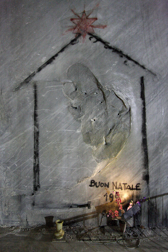 Effige della Madonna col Bambino, scaturita naturalmente dopo il taglio di una lastra di marmo nelle cave di Carrara.