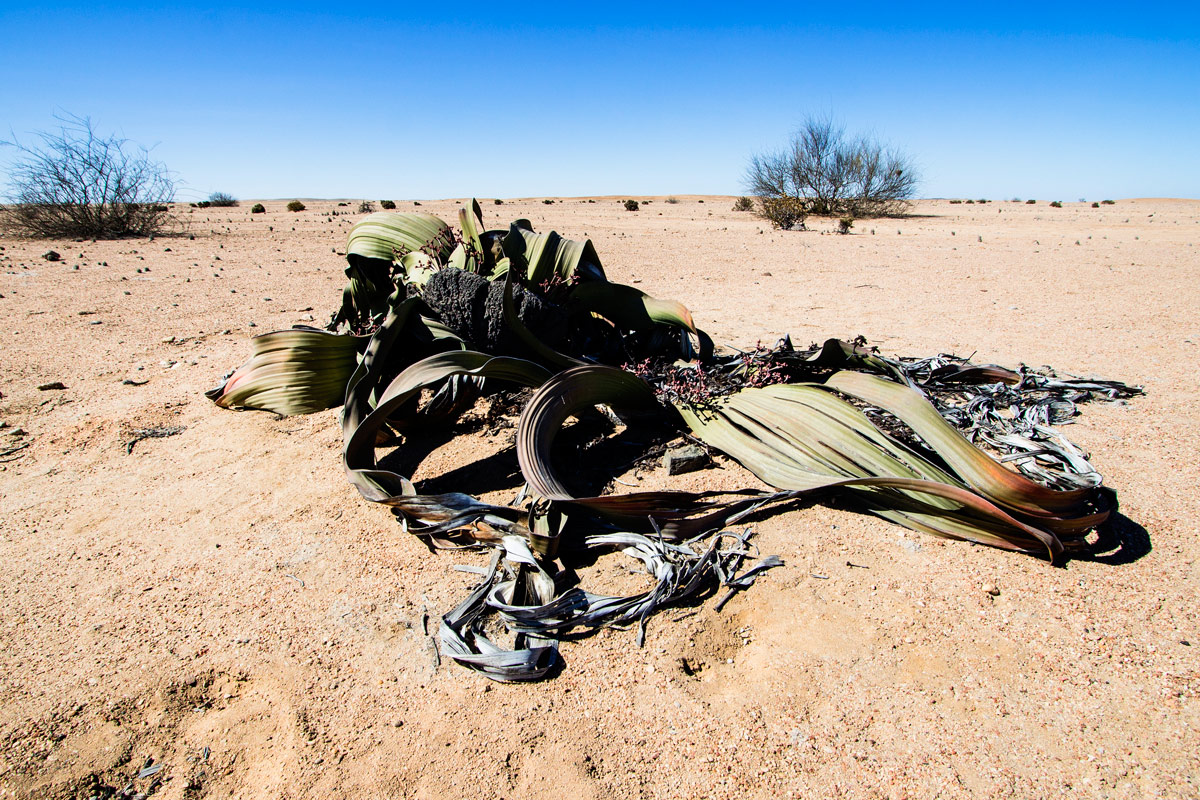 | Namibia. Sono considerate alberi, imparentate con le conifere, la concentrazione maggiore si trova a est di Swacopmund, hanno una radice lunga fino a 3 metri e le più grandi hanno probabilmente 2 000 anni. L'impollinazione è non chiara. |