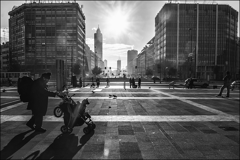 mi piacciono le geometrie, costruite dai palazzi e la strada, in prospettiva, quando disegnano un palcoscenico, in cui gli umani passeggiano nel quotidiano.