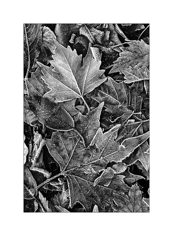 La brina ed il b/n rendono molto interessanti queste semplici foglie.