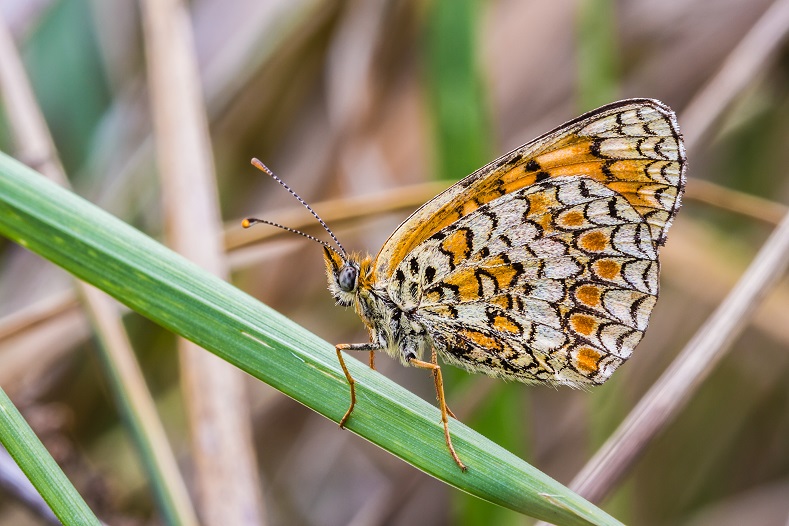 Ritratta su uno sfondo appena appena percettibile, questa è l'unica Melitea Phoebe che ho ritrovato nella scorsa stagione.