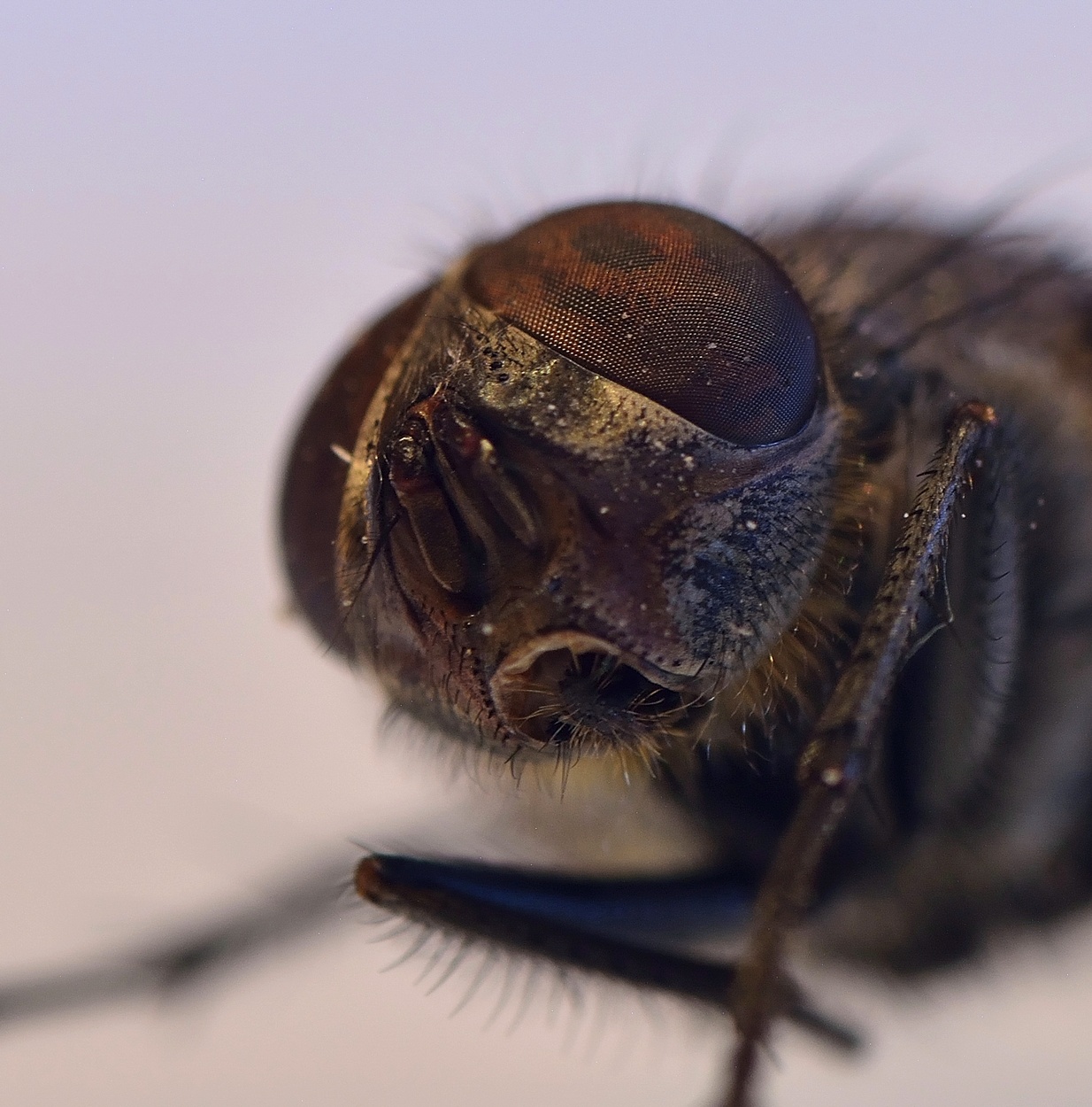 le mosche come tutti gli insetti non stanno mai ferme se sono in piena attivita' mentre se esci all'alba quando sono ancora addormentate oppure al tramonto quanto scelgono il posto dove passare la notte potrai riprenderle ferme e in tutta tranquillita'.Detto cio' l'immagine condivisa mi sembra che abbia problemi di nitidezza...il crop ,il diaframma utilizzato e il tempo di scatto non hanno aiutato in tal senso,in ogni caso con un solo scatto e a questi ingrandimenti non puoi avere tutto a fuoco ...ti consiglio di non chiudere piu' di f16 ,che e' anche troppo,perche' l'effetto della diffrazione aumenta e diminuisce la nitidezza/dettaglio..il punto di ripresa che hai scelto mi piace ma personalmente lo trovo poco efficace per questo ingrandimento visto in orizzontale e con le zampe anteriori tagliate forse un classico frontale sarebbe stato piu' d'effetto cercando di avere tutti e due gli ommatidi sullo stesso piano oppure riprendendolo lateralmente,di profilo Smile