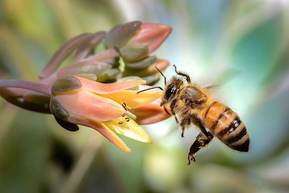 | la delicatezza dei colori del fiore aiuta la lettura della foto stessa, donando leggerezza anche all'azione dell'ape.... |