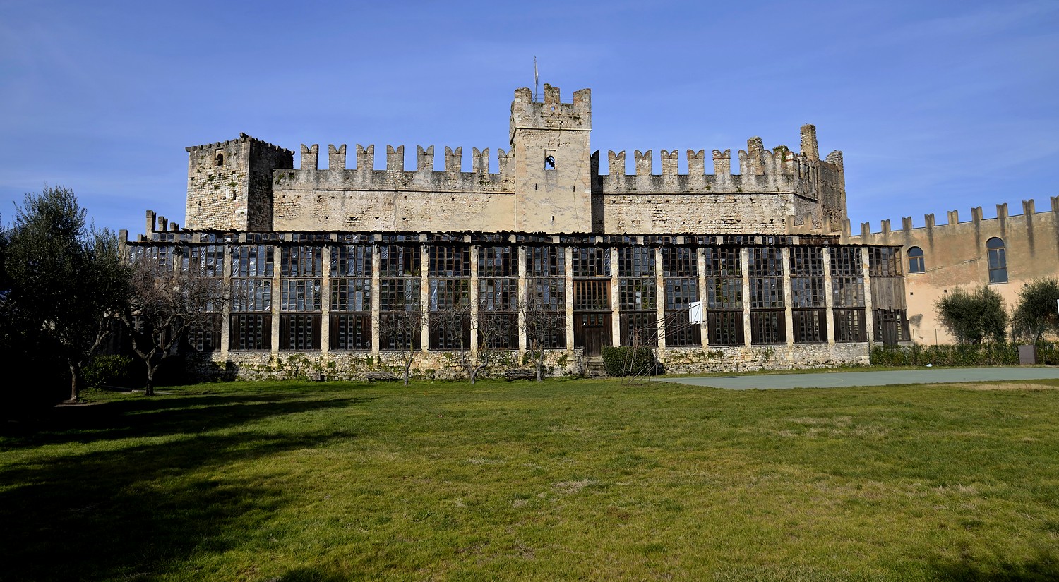 La limonaia di Torri del Benaco con alle spalle il castello.
