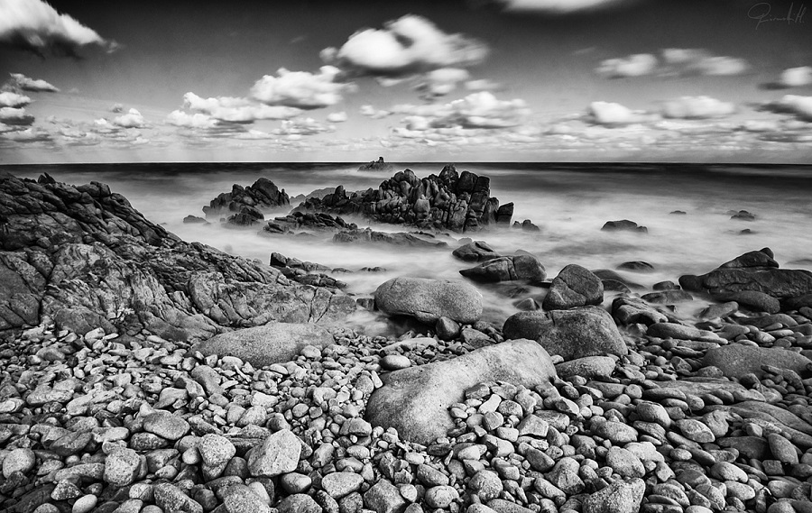 | Trovo che la parte ciottolosa sia troppo invadente e meno interessante del cielo. Un bianco e nero vigoroso. |