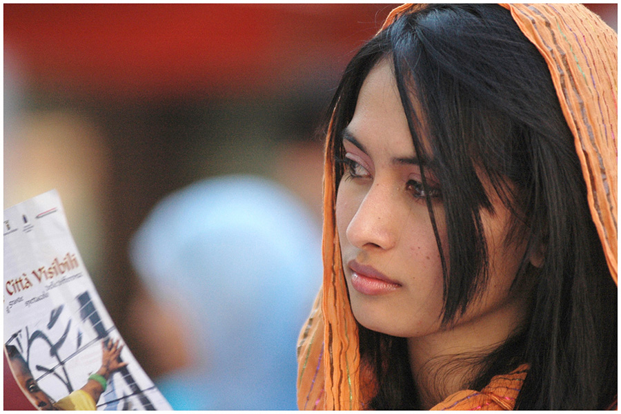 Bellissima l'espressione della ragazza,che suppongo non sia in posa,e la presenza in angolo del depliant con la figura del bambino che la contestualizza.Complimenti!  |