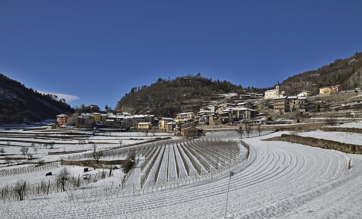 | gradevole panorama così come il grafismo creato dai filari magari potevi clonare quel palo in primo piano. Trovo i colori un pochino grigi