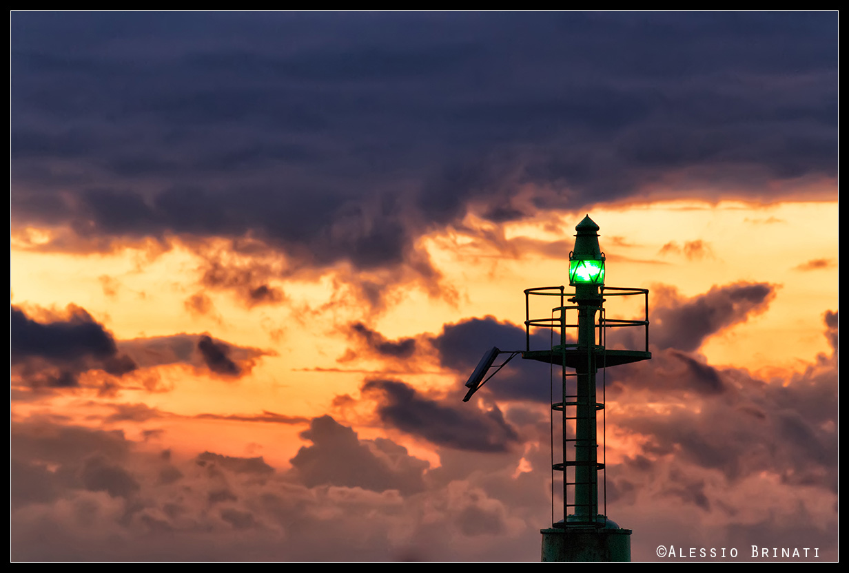 bello il contrasto del cielo con la luce verde del faro, bella nella sua semplicità anche la composizione  |
