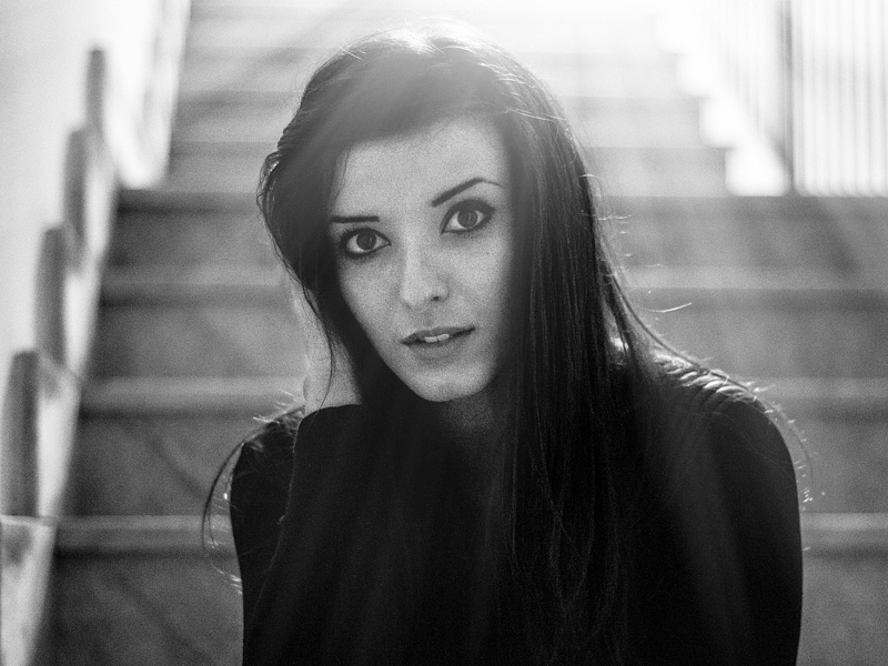Piacevole ritratto; il controluce ben si sposa con bianco e nero e grana, le piccole solarizzazioni sul viso (credo dovute al "recupero" in post) donano un effetto qusi pittorico molto ben aiutato dall'espresisone della modella