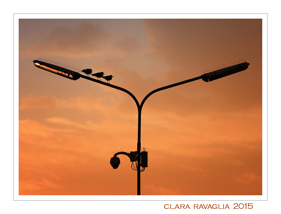 Questi gabbiani la sera, se passo in palizzata, sanno già che li fotograferò, e gentili e un po' rassegnati, si mettono in posa per me..