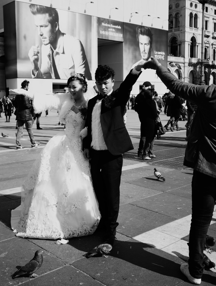 il mio intento, però, era far si che il volto del modello, quasi turbato dalla coppia che gli ruba la scena, fosse 'supportato' dalle mani dello sposo e del fotografo.