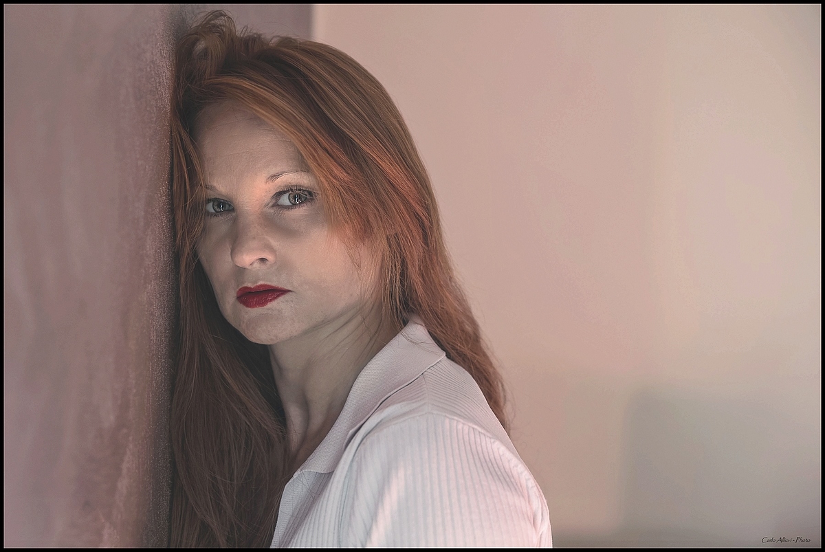 ho cercato di giocare tra il soft della luce, il tono simile dei colori (capelli/ambiente) e cercare contrasto tra questo e la "durezza" dell'espressione