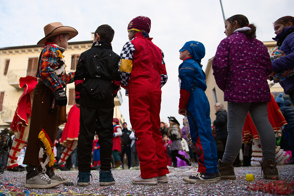 Il senso che volevo trasmettere era quello di "diversità", cioè tutti guardano a sinistra e il bimbo vestito da cowboy invece a destra, mentre passano le maschere... |
