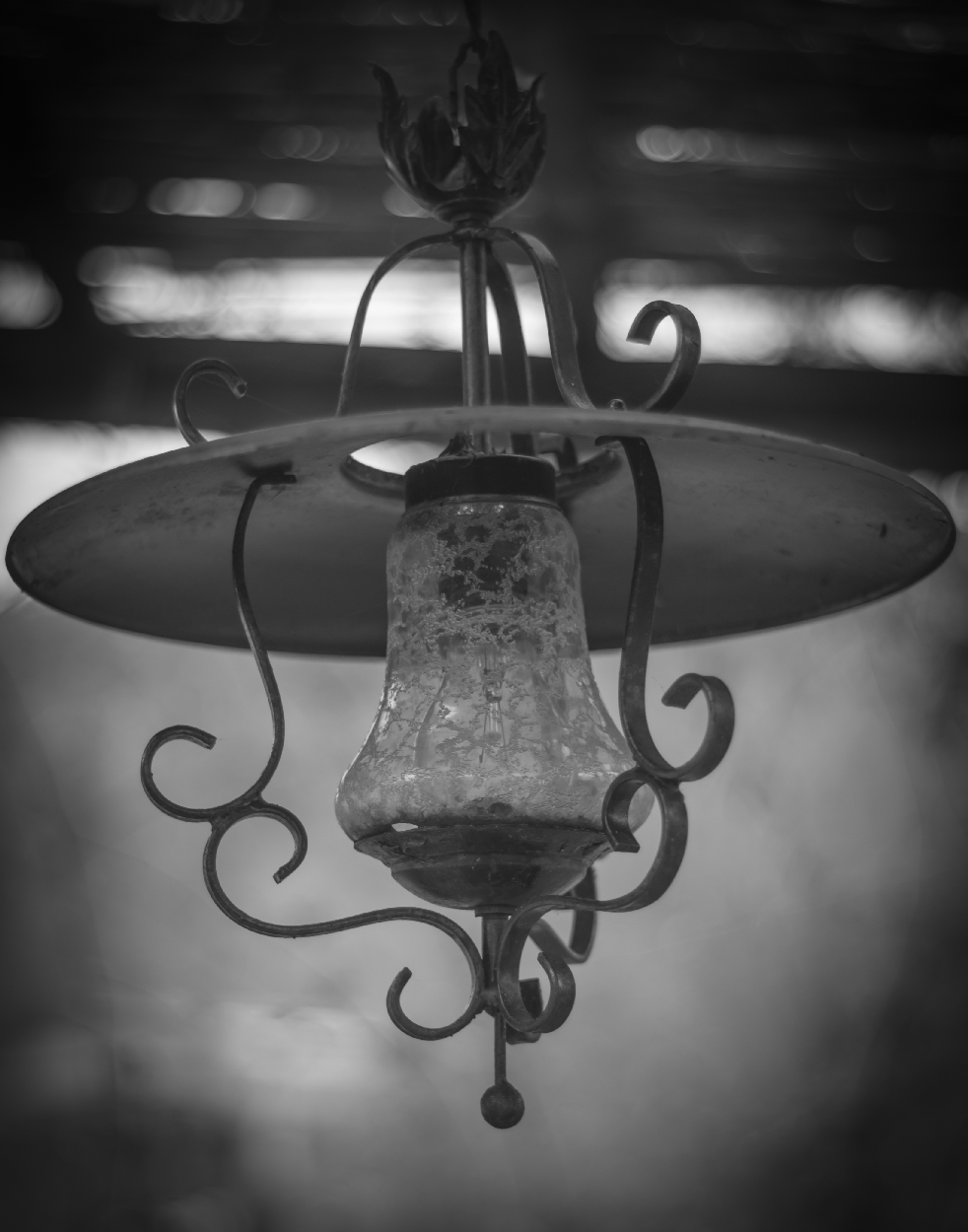 Ad esempio, le tre volute in ferro battuto in maniera da nasconderne una dietro e le altre due simmetriche ai lati senza impallare la lampada.