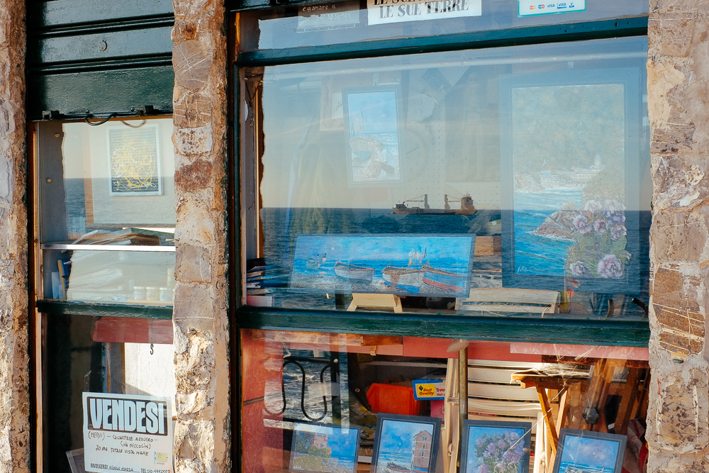 Trovo molto interessante questa tua proposta. Mi piacciono il mare e l'imbarcazione riflessi che formano un quadro immaginario e si confrontano con quelli reali esposti in vetrina.