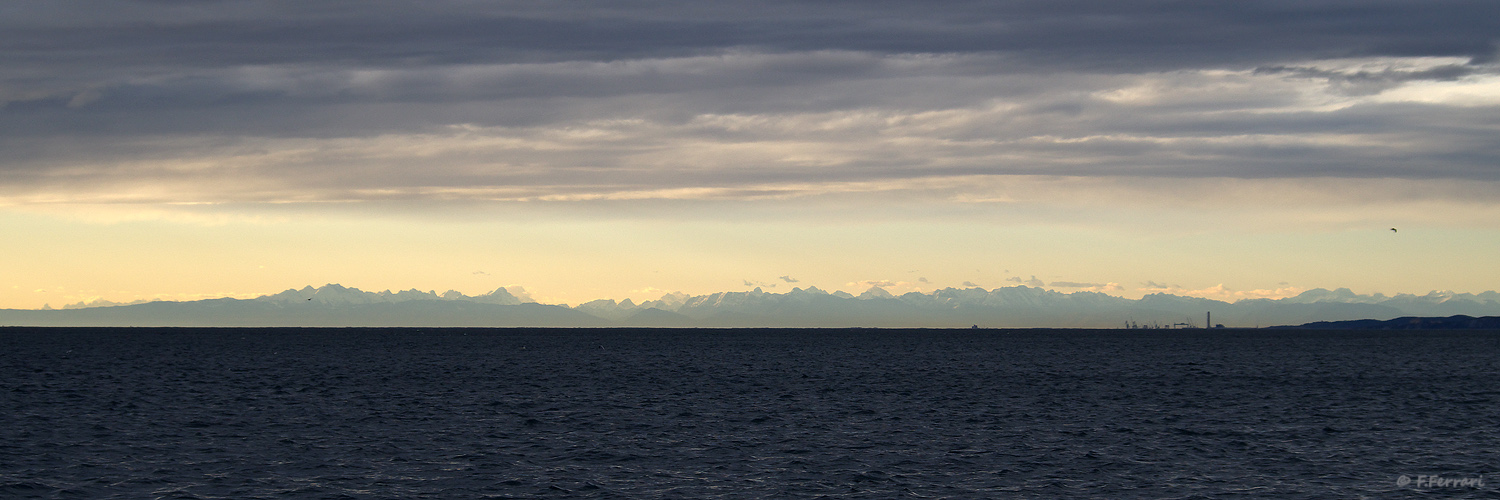 Un cielo ed un mare cupi che si aprono sullo splendore delle lontane montagne.Un'immagine più "dura" delle precedenti ma ugualmente bella.Complimenti!  |