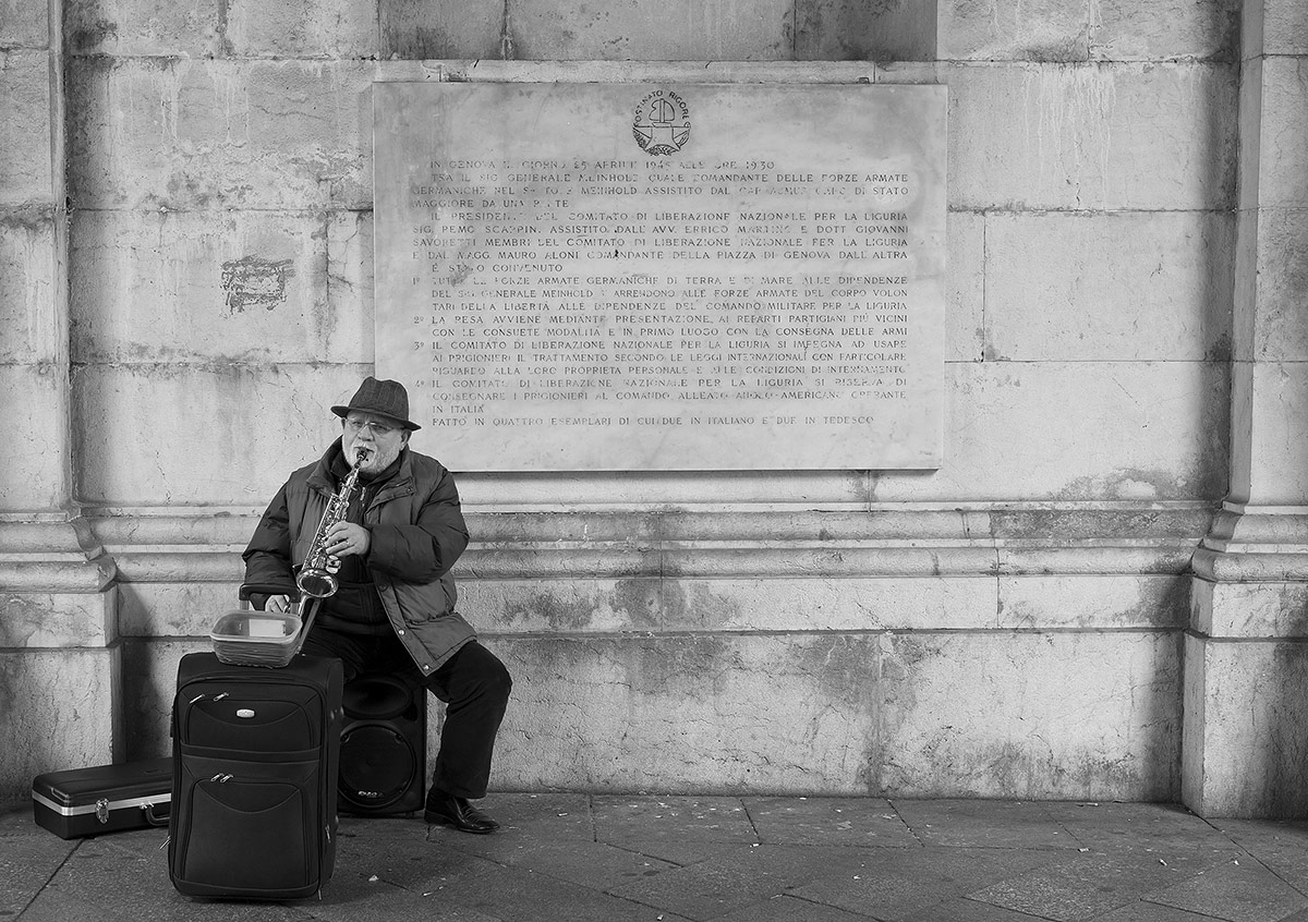 Qualche dubbio sul contenuto, nel senso che con questo taglio ampio metti in relazione il musicista e la lapide dietro, ed un nesso io non lo trovo. _________________ Paolo