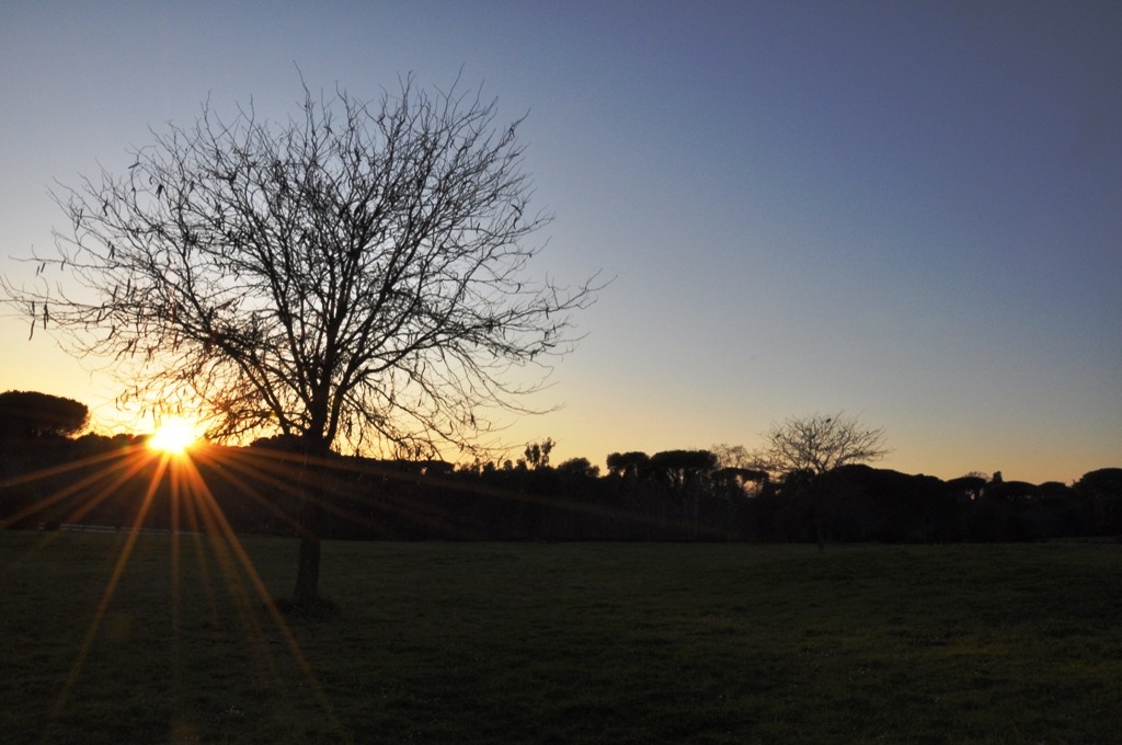 Ciao Giovanni, mi piace la composizione che vede l'albero decentrato e quel sole a stella che lascia partire come lame i suoi raggi.