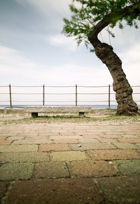 la composizione risente dell' invadenza dell' albero, è la panchina e lo sfondo che mi interessano , ed i tempi sono assai lunghi , mi piace la contrapposizione tra l' immobile e il non, che nella mia testa doveva essere delle nuvole e che paradossalmente si scorge nel solo fogliame , ovviamente.