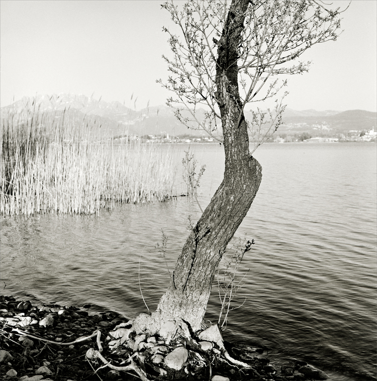 A mio parere può stare bene in entrambe le sezioni, anche se la componente paesaggistica è obiettivamente forte. Hai perfettamente ragione, ciò che mi colpisce è la qualità della luce e la sua distribuzione. il biancore alla base del tronco, che spicca contro il nero dei sassi.. e poi ancora nero vicino alla chioma, per poi tornare alla brillantezza della luce che illumina le canne nel lago. Ottima anche la lucidità dell'acqua. Molto intensi e belli questi contrasti.