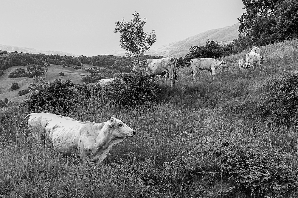 bella questa composizione tra animali e vegetazione, forse la luce era dura, il B/N ci puo' stare,....