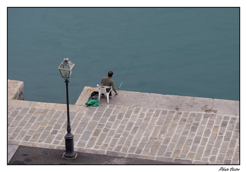 Mi sono fermato ad osservala un pò e devo dire che pur se non mi dispiace non la trovo entusiasmante! C'è qualcosa che non mi convince, però sinceramente non so da cosa possa dipendere. Forse il pescatore e il lampione troppo vicini e di conseguenza il molto spazio vuoto sulla destra o forse il punto di ripresa...non so! Magari con un altro taglio o con un "ritaglio" sul pescatore come dice gino avrebbe assunto tutt'altro aspetto!
