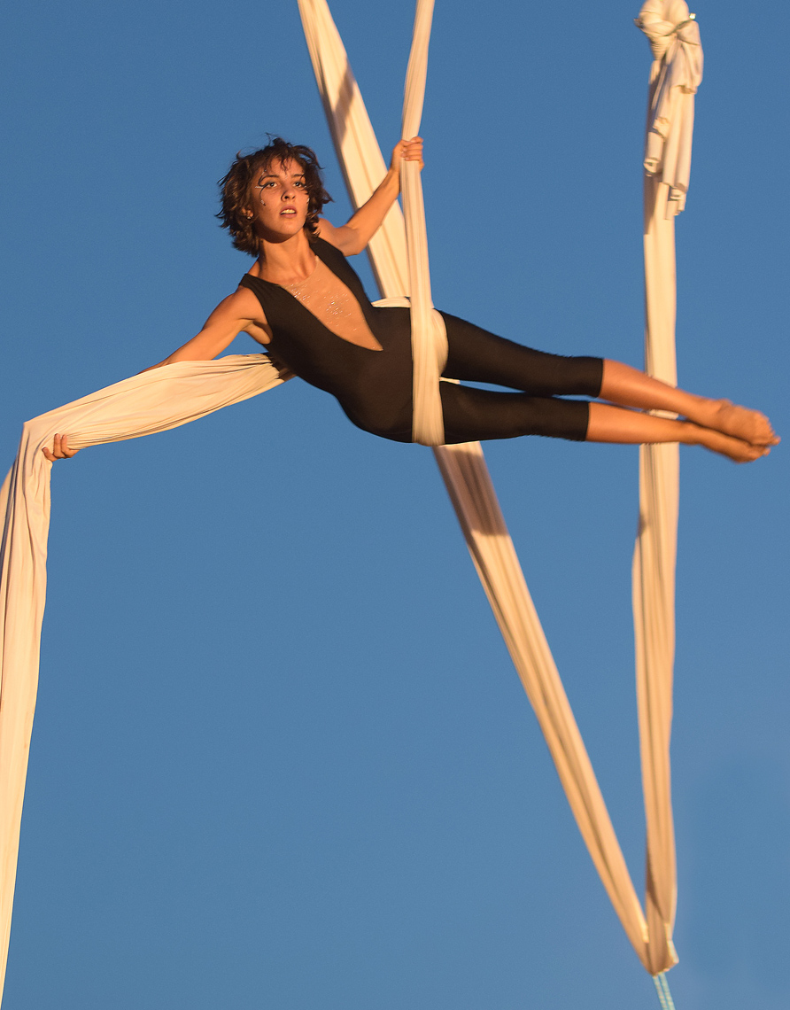 ha un bell'impatto visivo grazie alla sospensione del soggetto e molto coinvolgente con la composizione di quelle linee geometriche create dal velo (non so como chiamarlo).
