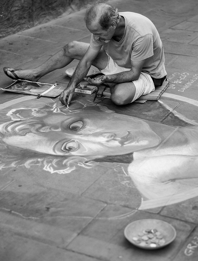 Mi piace la composizione, anche se secondo me avrebbe beneficiato di più spazio in alto sopra l'artista e in basso sotto la ciotola.i due elementi si bilanciano bene ma sono troppo vicino ai bordi. Comunque lo trovo un bello scatto!