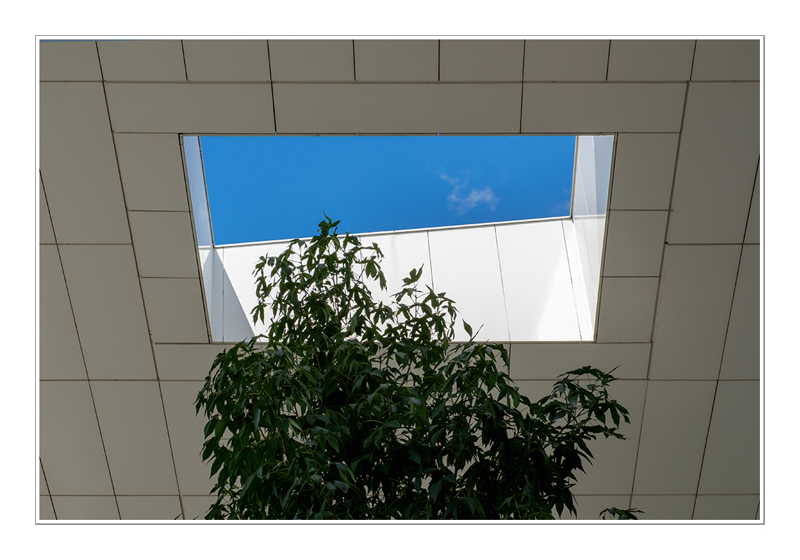 fatta di linee, di cielo e di verde, un verde costretto all'interno della struttura