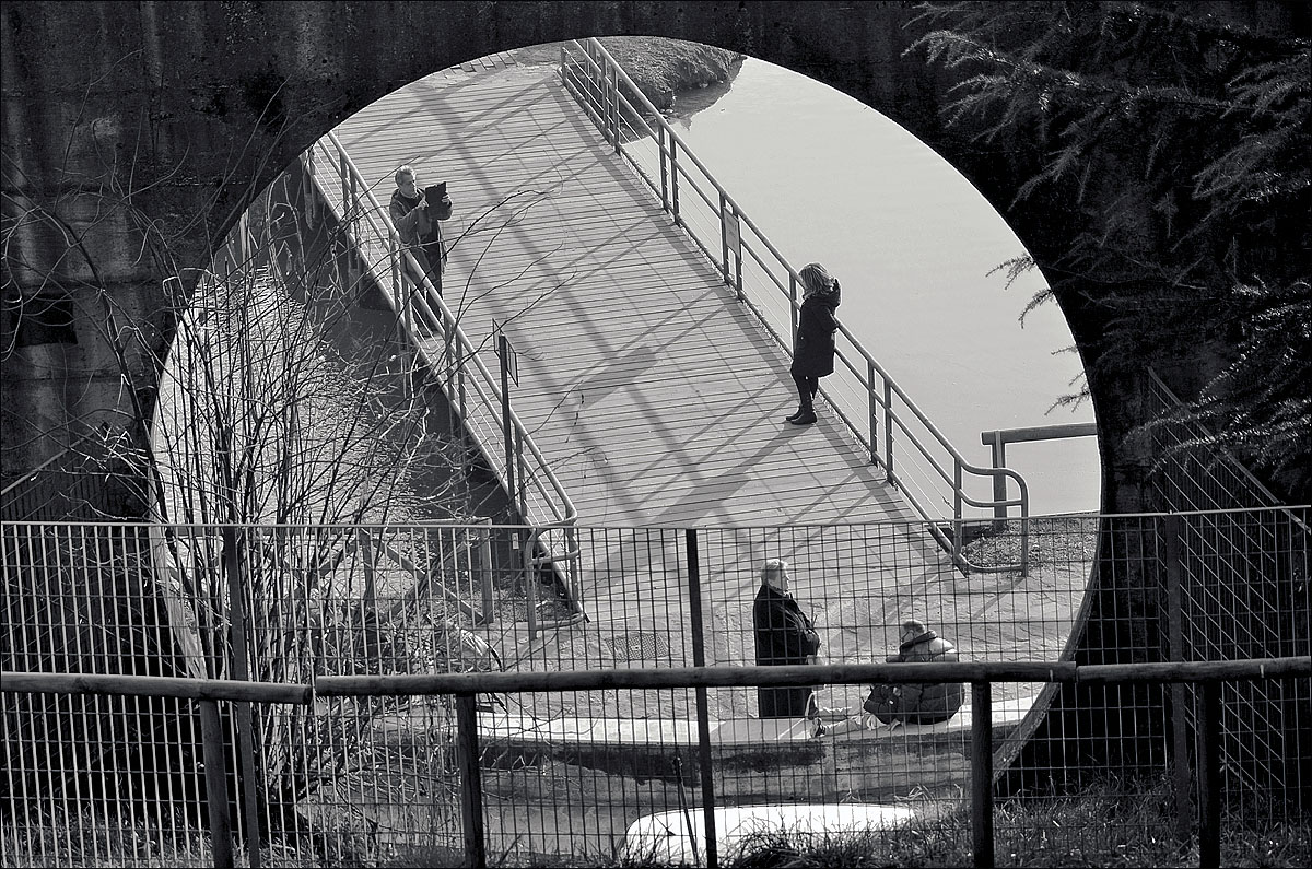 Ben utilizzato l'elemento architettonico per inquadrare frammenti di normalità quotidiana. La posizione si presta anche a foto d'appostamento, nell'attesa che si verifichi la situazione giusta per lo scatto più riuscito.
