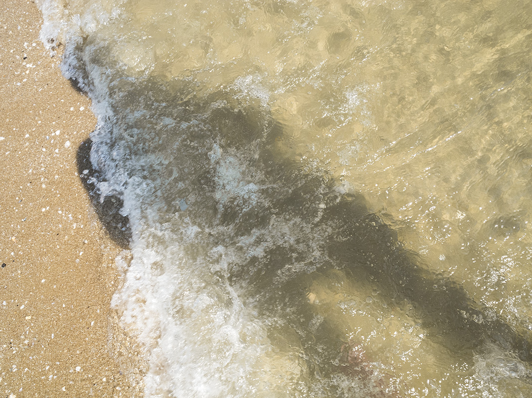 Perché parli di sabbia scura? Nella tua variante la parte scura è la schiuma dell'acqua, la sabbia è bluastra come il resto della foto.