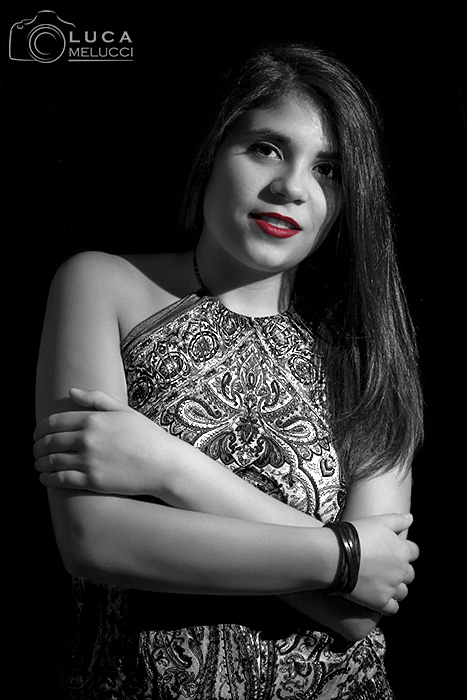 Ho staccato il Flash dalla macchina e ho effettuato alcune prove, in questo caso ho scattato posizionando il flash a 45° tra macchina e soggetto, alzandolo di circa 2m. Non ho creato un bn forte perchè mi piaceva un'atmosfera più morbida, il bianco e nero parziale è per creare un po' di tensione e sensualità in più.