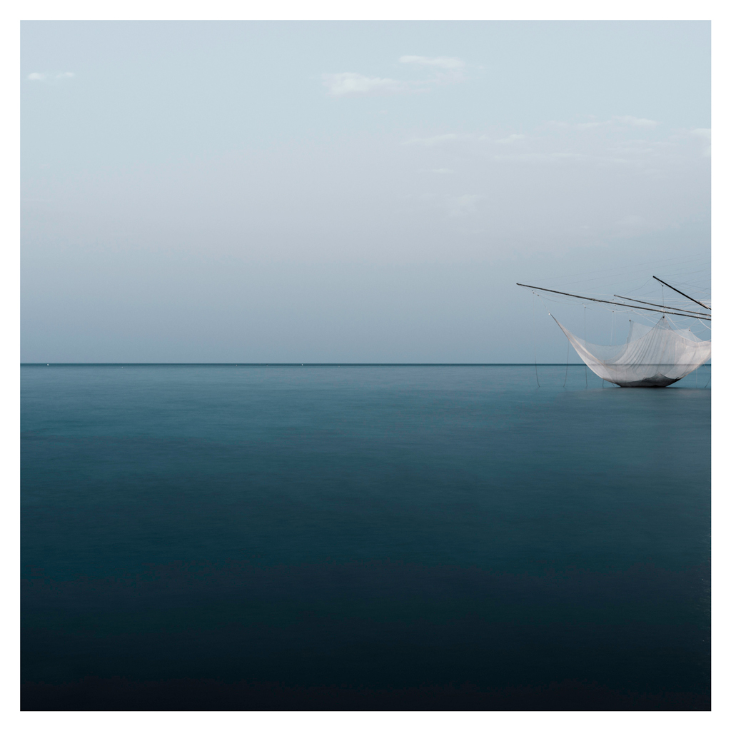 Bella. L’apprezzo Per diversi motivi. Prima di tutto l’estrema pulizia compositiva e tonale. La distesa d’acqua è una superficie piatta ed uniforma. Così è il cielo, uniforme e senza elementi (quali nuvole o variazioni tonali) che ne spezzino l’omogeneità. Questo genera due superfici (acqua – cielo) corrispondenti e che si richiamano graficamente. Per questo motivo l’averle rappresentate uguali proporzionalmente trovo che sia corretto ed accattivante visivamente. Il fatto poi di aver disposto la rete fortemente decentrata, sul bordo del fotogramma (ma simmetrica orizzontalmente fra cielo e mare) è un motivo sia di rottura con l’armonia globale, sia di “conservazione” della suddetta armonia. Quindi, sì elemento di perturbazione, ma non perturbazione eccessiva, che (forse) avrebbe troppo contrastato con la pulizia e calma formale della scena. Ben fatto.